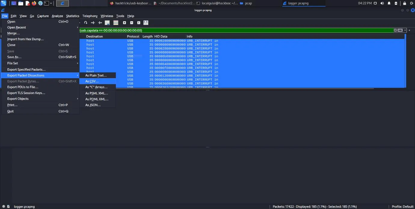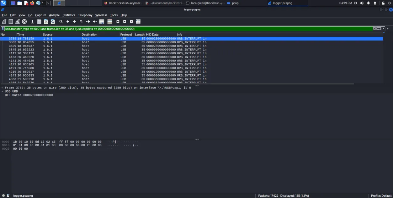 https://github.com/carlospolop/hacktricks/blob/master/forensics/basic-forensic-methodology/pcap-inspection/usb-keyboard-pcap-analysis.md