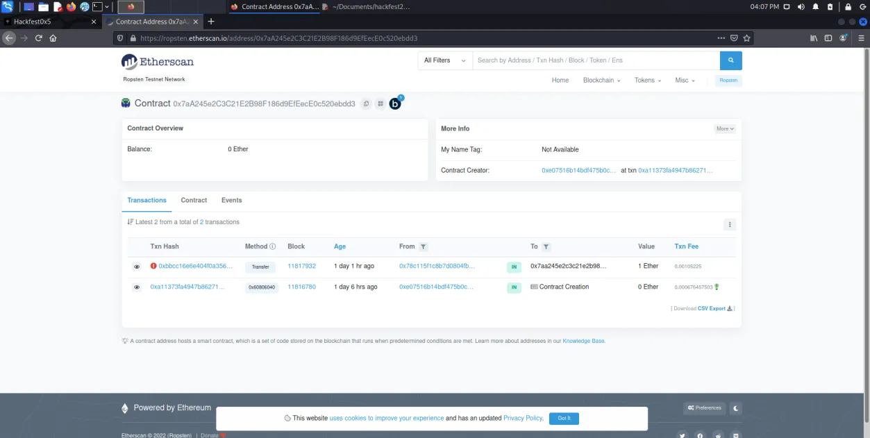 Dapat diketahui bahwa 0x7aA245e2C3C21E2B98F186d9EfEecE0c520ebdd3 merupakan alamat dari ropsten etherscan